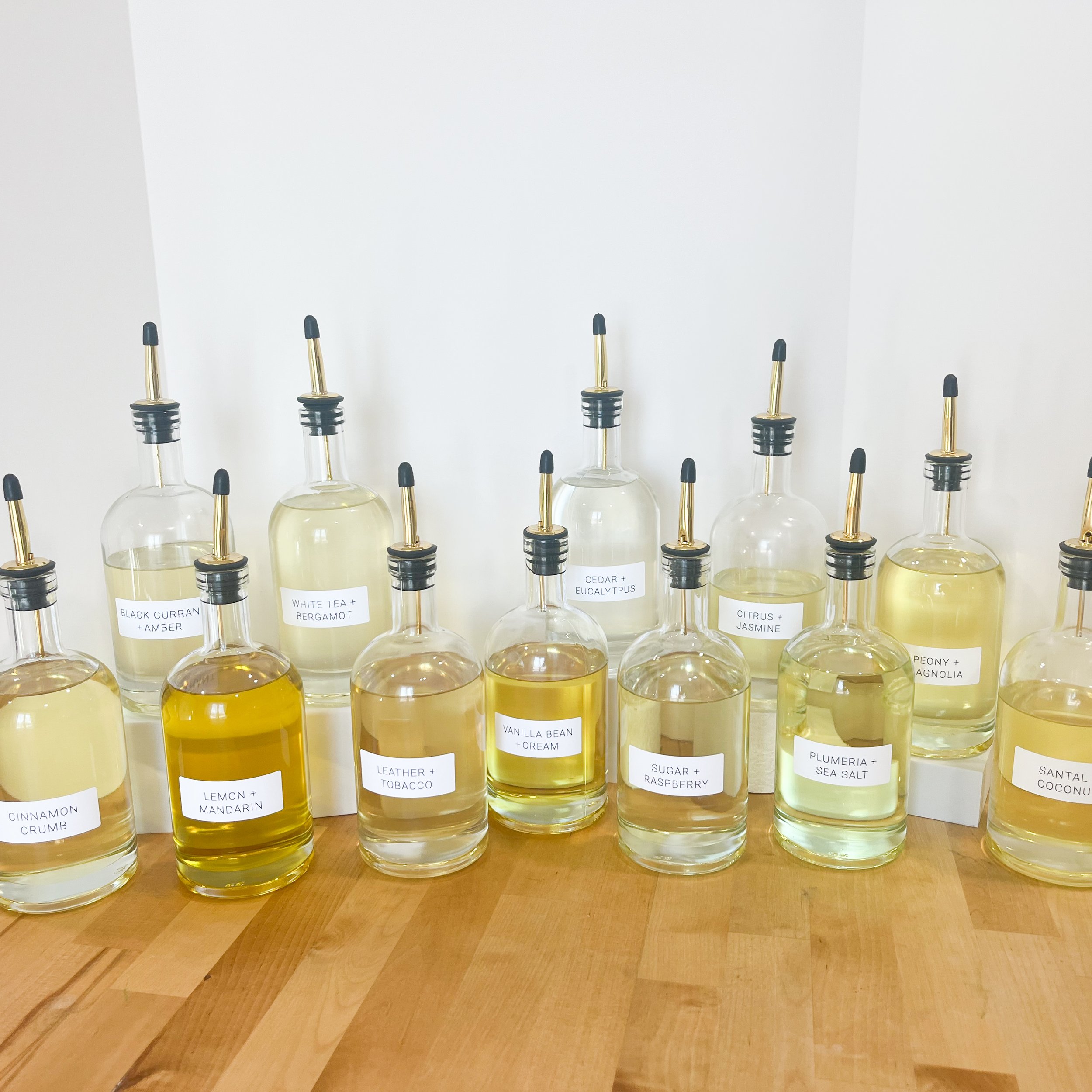 14 carefully curated fragrances that are wonderful alone + blended together. Ranging from feminine, floral + fruity to masculine, woody + fresh, there is something for everyone.